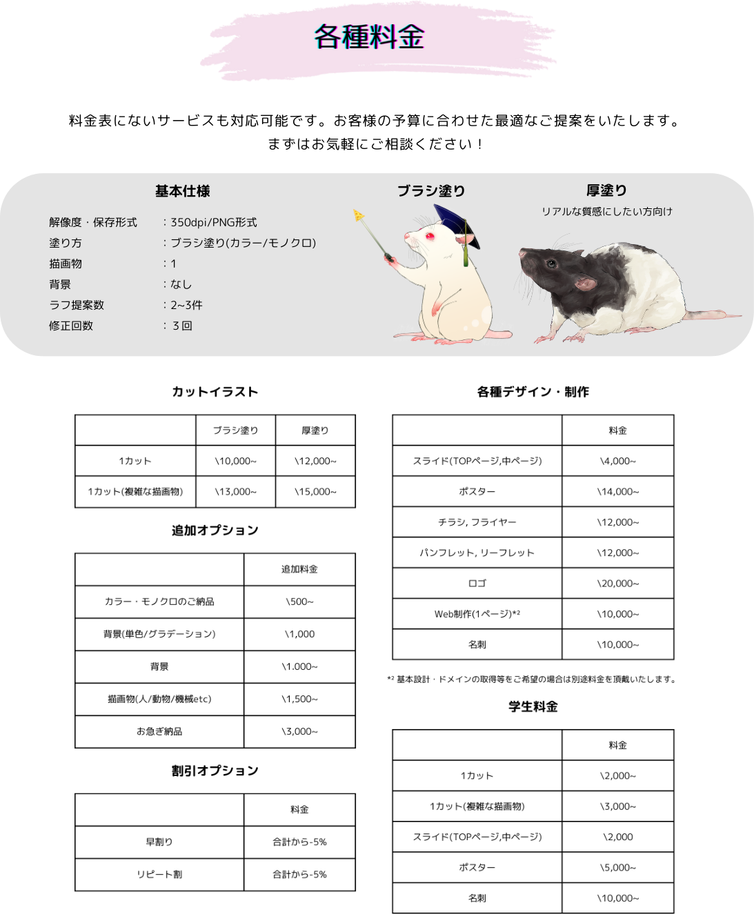 - 研究論文、発表スライド、ポスター、チラシ用のイラストや概念図の制作